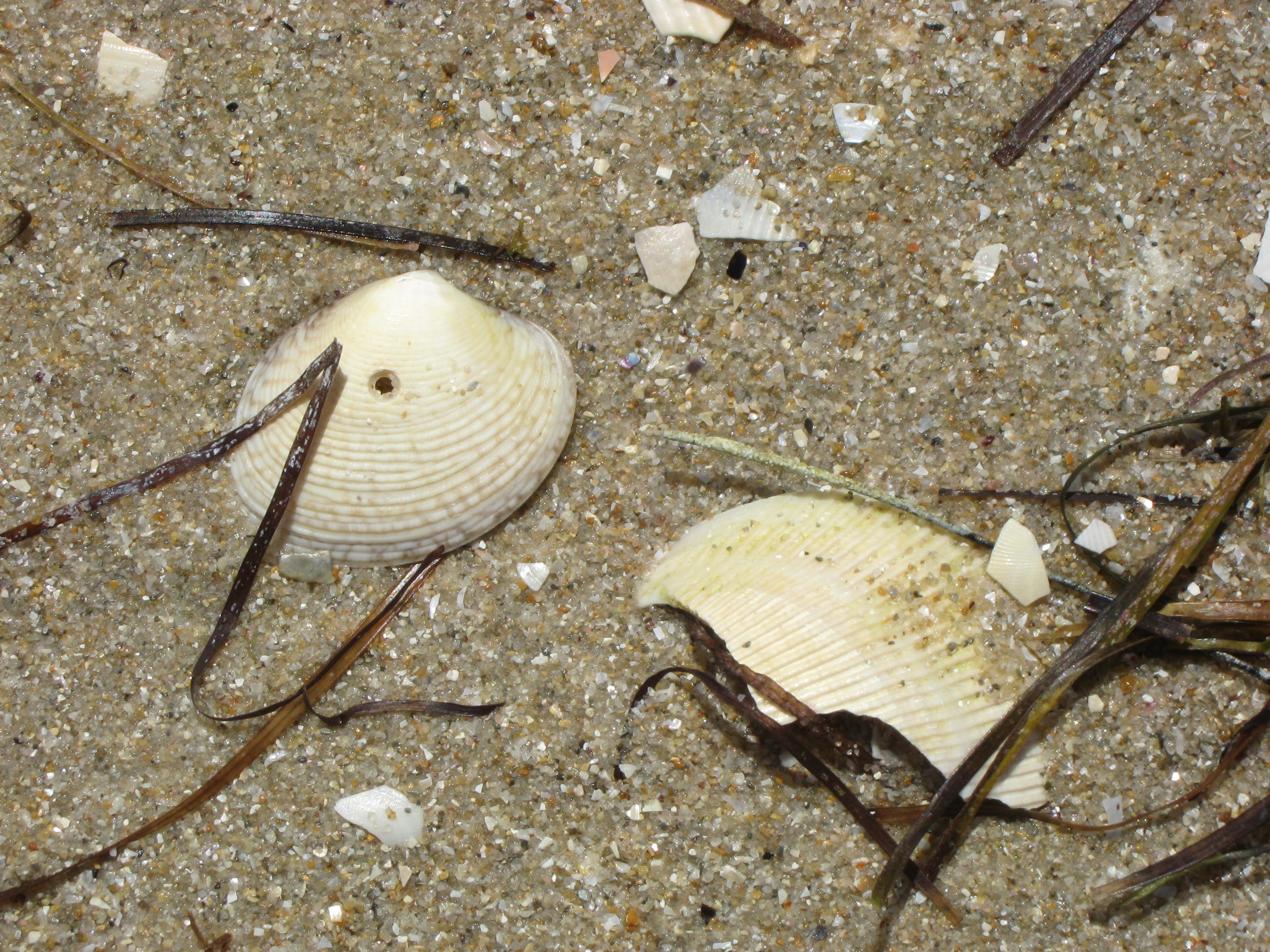 Well, the hole is brought to you by none other than the very same conical sand snail! It injects a dissolving agent into an unsuspecting pipi through the hole, then sucks up the contents. Mmmm-mmm.