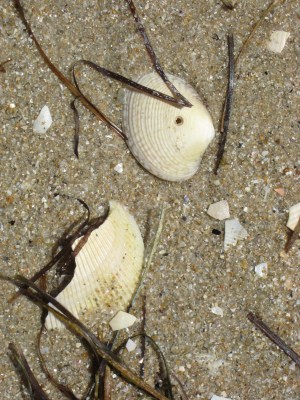 But – guess what? Those clear, crescent-shaped wobbly jelly shapes aren’t jellyfish at all! Instead, they are the egg sac from the conical sand snail, each containing hundreds of snail eggs. So squash away- if you want hundreds of snail eggs between your toes- it’s not going to sting you!
