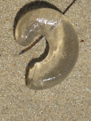 As a child, I used to love standing on the jellyfish washed up onto the beach and feeling them squelch through my toes. You know the jellyfish- those clear, crescent shaped wobbly jelly shapes.