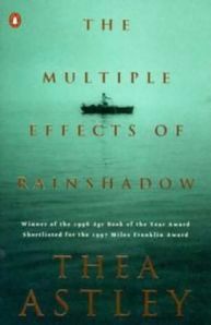 But a rainshadow is a desert, not a jungle. It’s the phenomenon by which rain falls on one side of a mountain range but it remains dry on the other side. Now that I know this, the rainshadow metaphor works well too. There is a cataclysm; it occurs, then there is parched emptiness. There is a dessication about the people in this book: they move out from Palm Island onto the mainland where they live unhappy, meaningless lives.