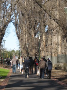 As I left, there was a religious pilgrimage of a different type through the Fitzroy Gardens as the crowds headed towards the MCG for the Collingwood/Essendon match.