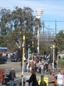 Ah- the footy and the MCG on a sunny winter afternoon- hot pies (unfortunately), seagulls, the Footy Record and Jolimont railway station. Who could want for more?