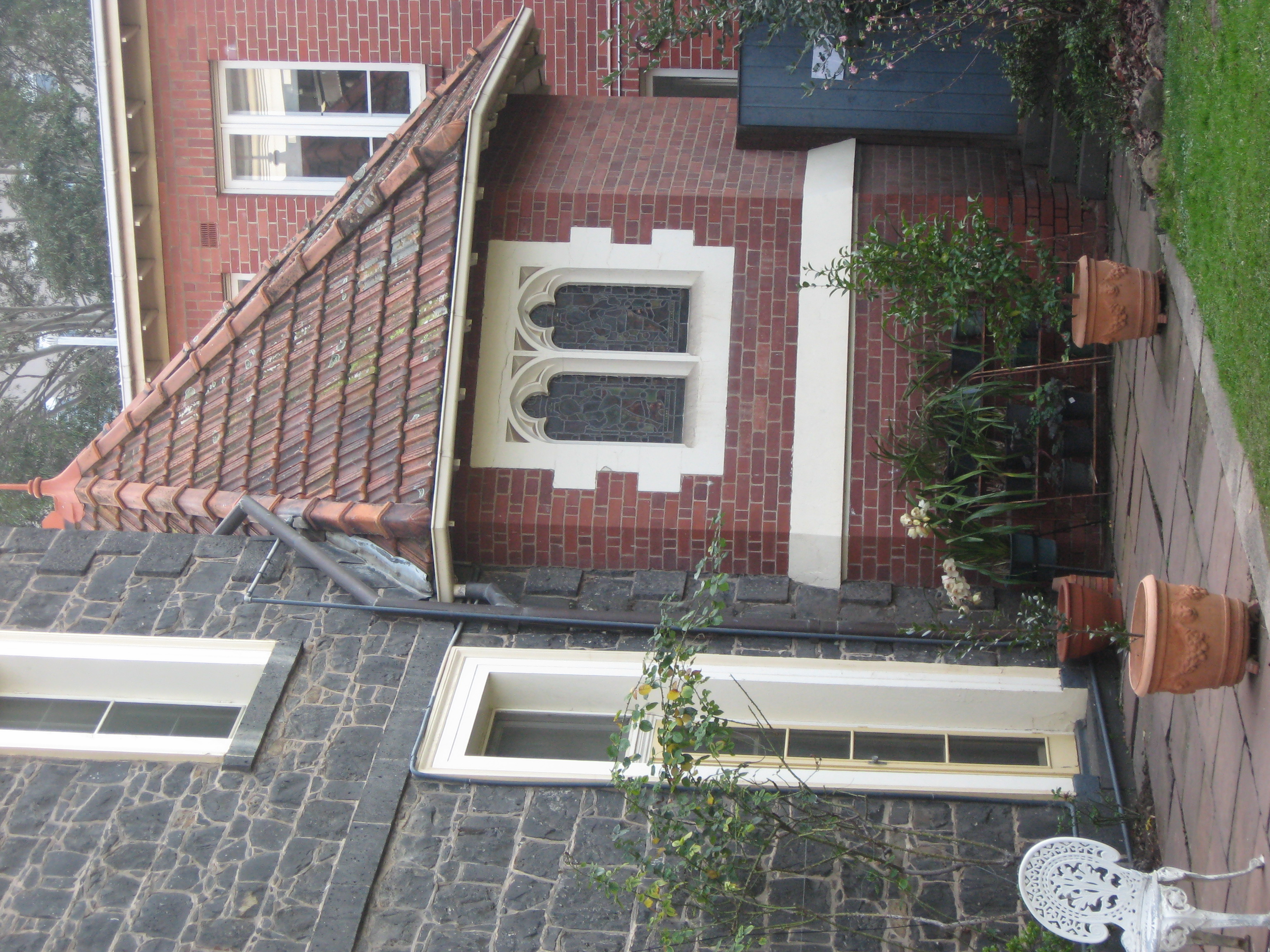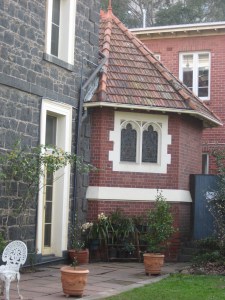 If it looks a bit of a hodge-podge, that’s because it is. The first Bishop of Melbourne, Bishop Perry, selected the location so that he could walk into Melbourne itself, while being close to the site that was originally considered for the Cathedral between Hotham and George Streets in East Melbourne . It was later decided to construct the Cathedral in its present location on the corner of Swanston and Flinders Streets. Construction of Bishopscourt began in 1851 but because of the shortage of building labourers in these goldrush years, the house was not completed until 1853. Sixty years later it was decided that a grander house was required. One of the bluestone wings was demolished in 1903 and replaced with the rather discordant red-brick wing, resulting in its rather schizophrenic appearance.