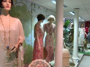 Her aim in creating the museum is to collect everyday clothes that people wore. Obviously the clothes were treasured enough for them to be preserved by family, or put away ‘for good’. Many of them are purchased, commercially-produced items (she shows the labels) and although there are some formal wear costumes, most of them are day clothes. She has a large library of magazines, pictures and books in order to research her displays, and in many cases she has been able to match private photographs of people wearing similar clothes, or magazine advertisements, to the costumes on show.