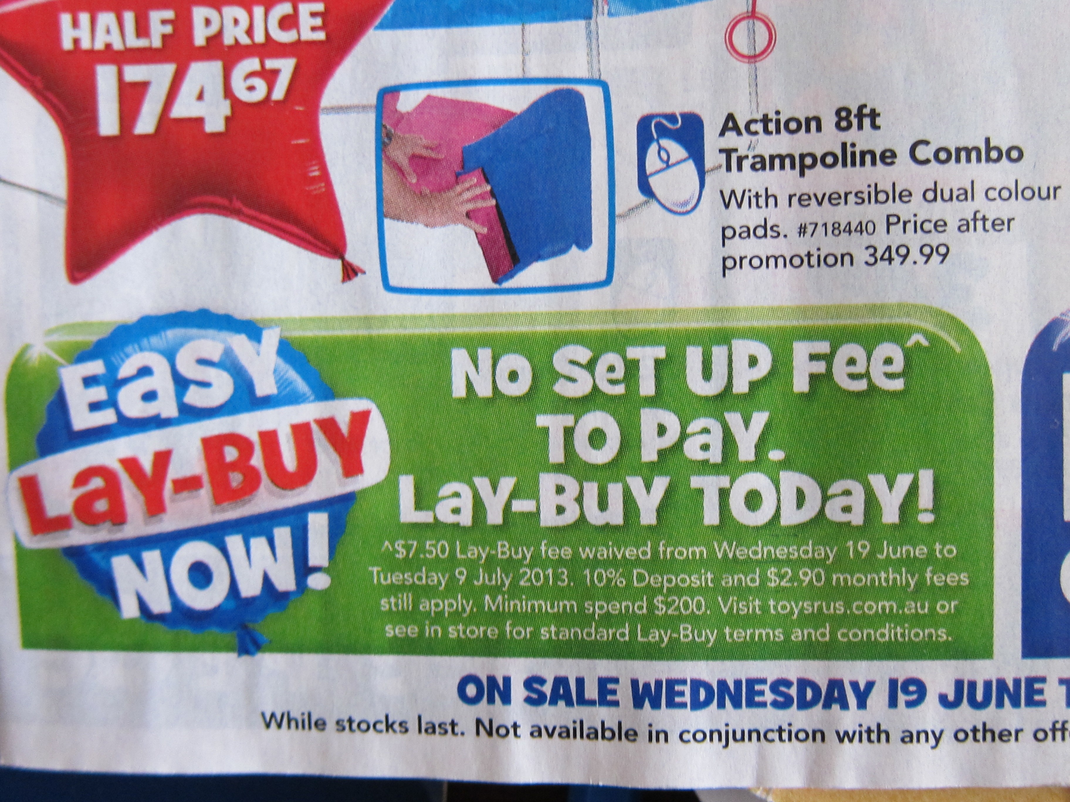 On the other hand, ToysRUs do still have layby, but there’s a catch!