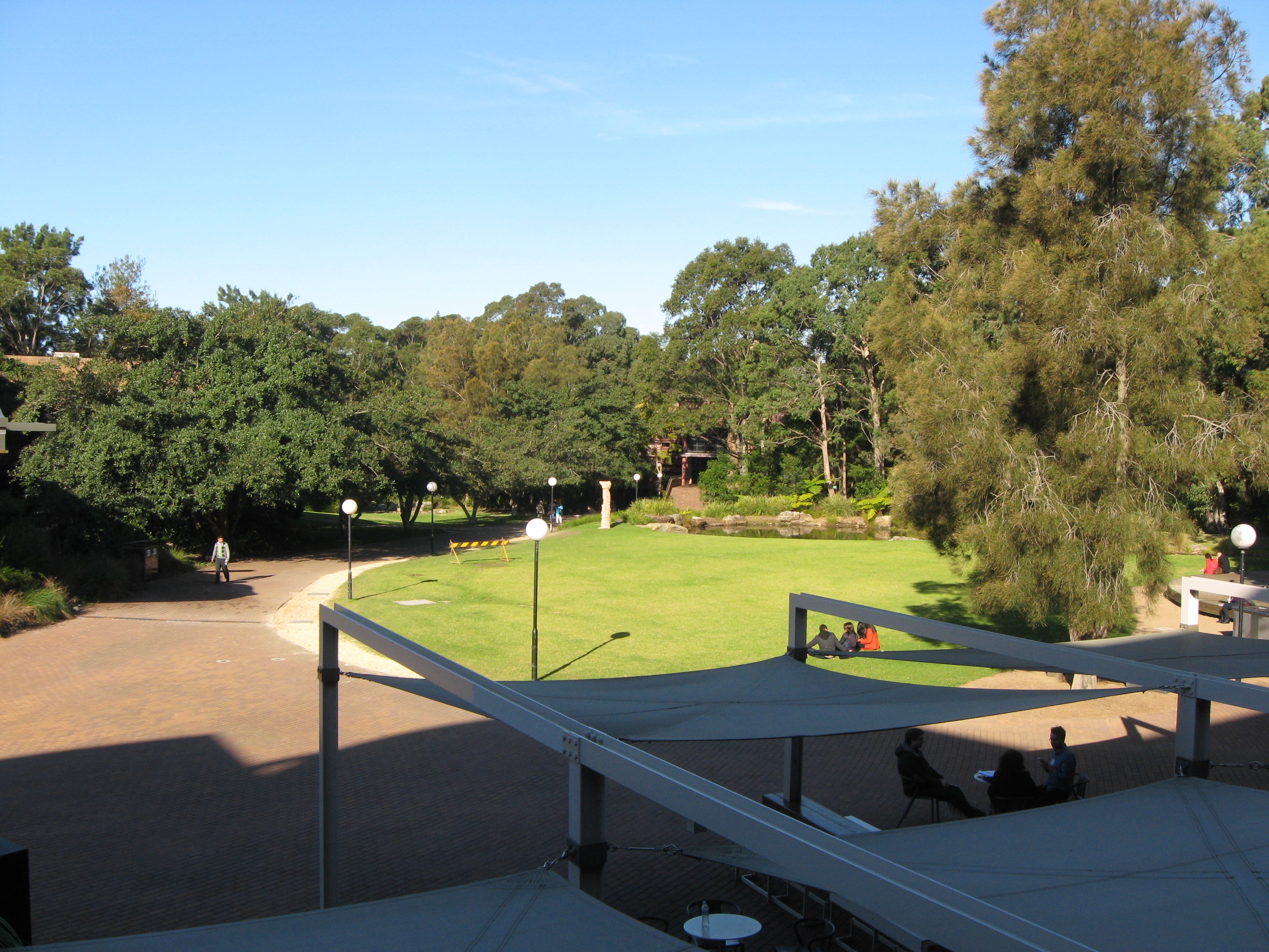 I was struck by the beauty of the Wollongong campus. It’s a 1970s university, and not unlike La Trobe in architecture, although it seems to be resisting the kindergarten colours of recent La Trobe buildings. What really set it apart is the gardens- lush, dense, rainforest gardens. Absolutely beautiful.