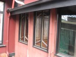 Pholiota is not visible from the street because a 1940s red brick house has engulfed it completely. It’s difficult to photograph because it’s not visible at all from the front and it’s hard to get enough distance from it in the backyard. It is an unusually pinky-red colour with, again, those Griffin windows.