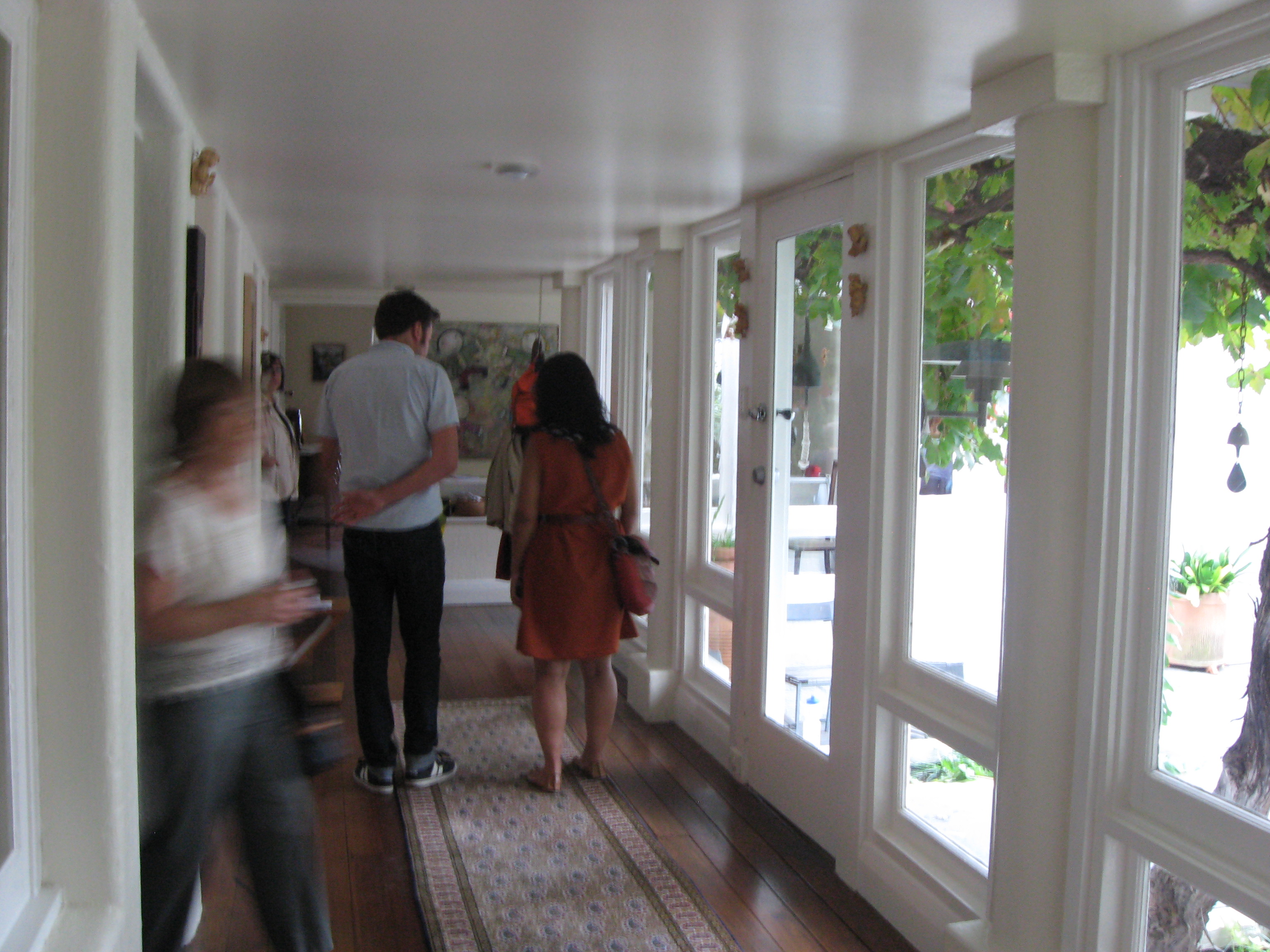 The hallway runs along the front of the house with small rooms opening from it. The roof is rather low