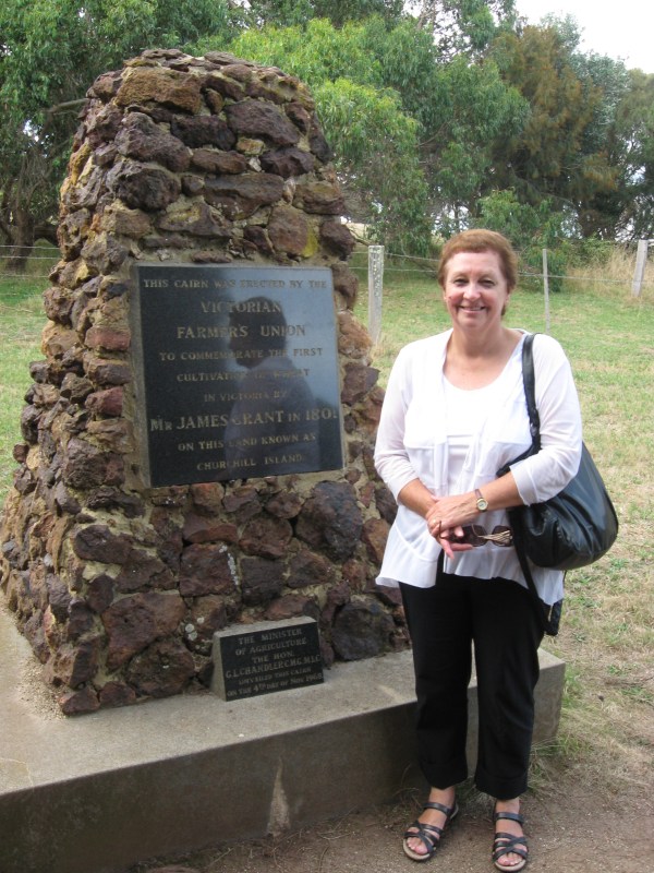 Beside a cairn celebrating Lt. Grant and his wheat crop