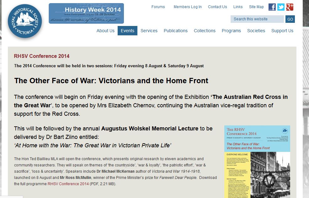 I’m going to this on 8th and 9th August. More information (and downloadable program) at http://www.historyvictoria.org.au/rhsv-conference-2014
