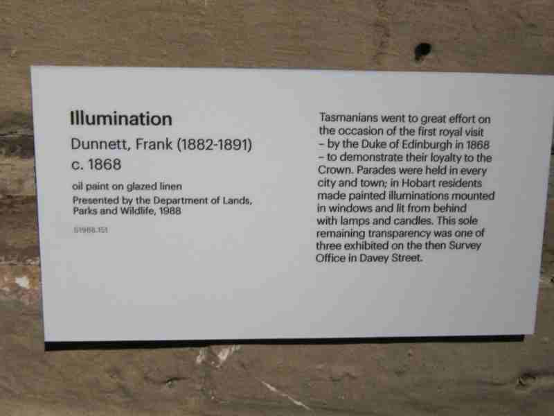 Some time ago, I wrote a post wondering what was meant by the ‘illuminations’ described at Anniversary Day celebrations during the nineteenth century. I was delighted to find an illumination at the museum at Hobart. It was created to celebrate the visit of the Duke of Edinburgh in 1868.