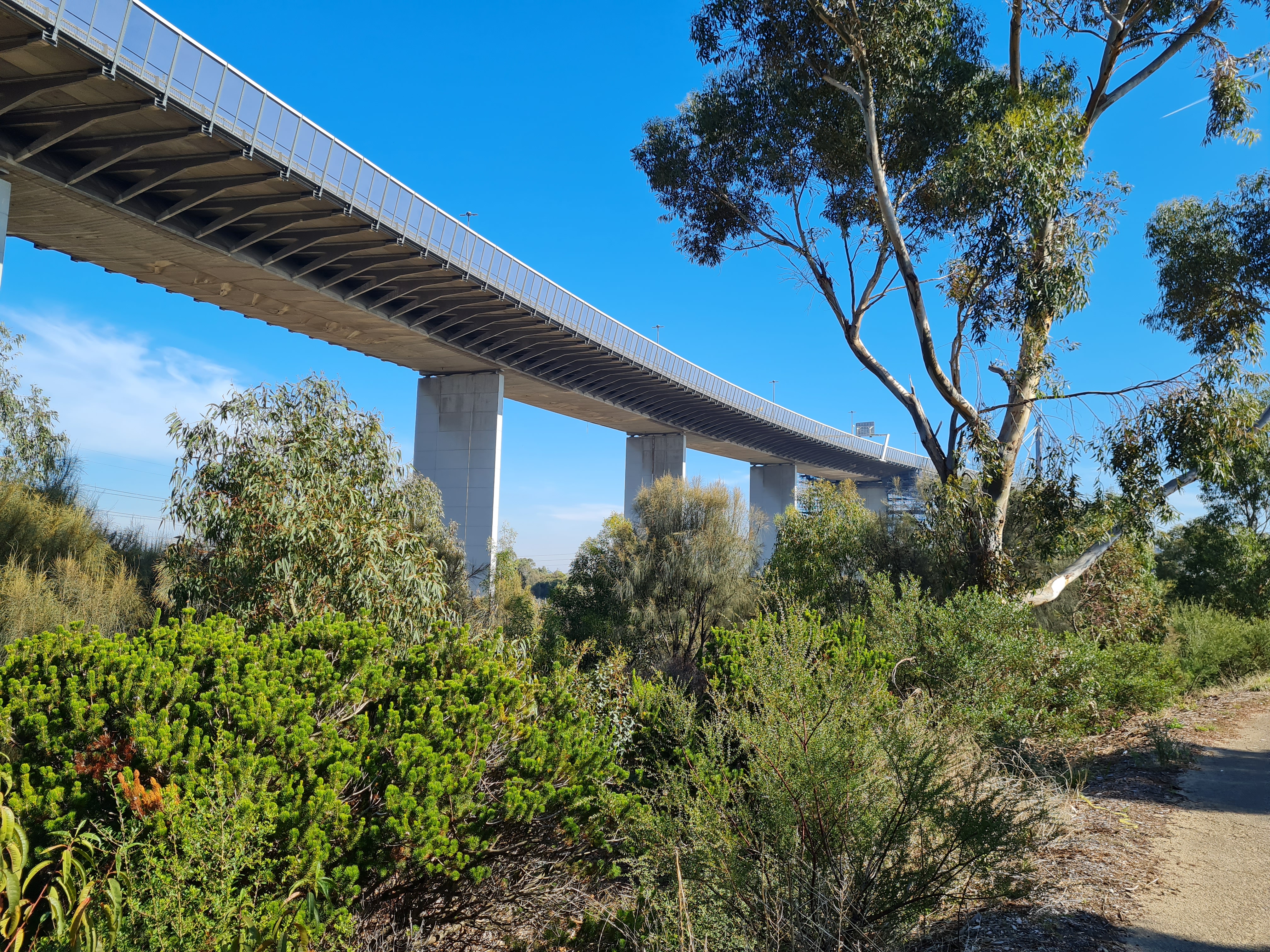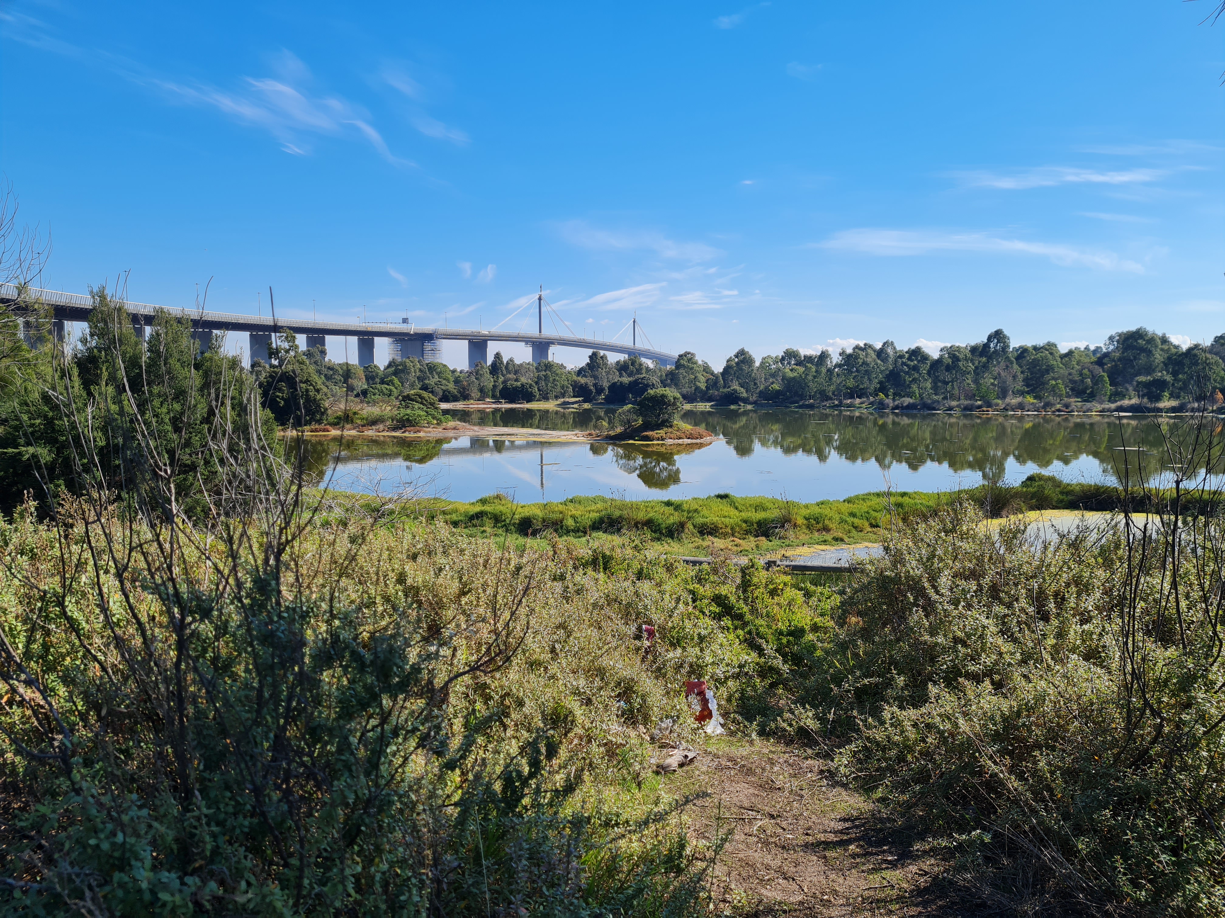 The lake, a former sand mine, turns a brilliant pink at the end of summer, but there was no colour in it today. There were no noisy miners, and so there was lots of bird life: wrens, honeyeaters, wattlebirds, mudlarks, magpies. It’s hard to believe that it was ever the blighted place it was forty years ago. The Age described it in 1979 as ‘scrofulous scenery indeed … dead water, swamp, sick factories, dead wood, haze, gasping barges, wretched refineries, wheezing chimneys, dead grass, institutional putrefaction’. It’s not like that now. There’s been lots of hard work done here by the Friends of Westgate Park since 1999 – a real gift to the people of Melbourne.