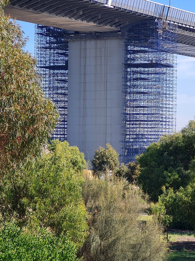 I’ll try to go back and see it when the lake is pink. We were fascinated by the scaffolding under the bridge too. Perhaps there’s always scaffolding there, moving from pylon to pylon?