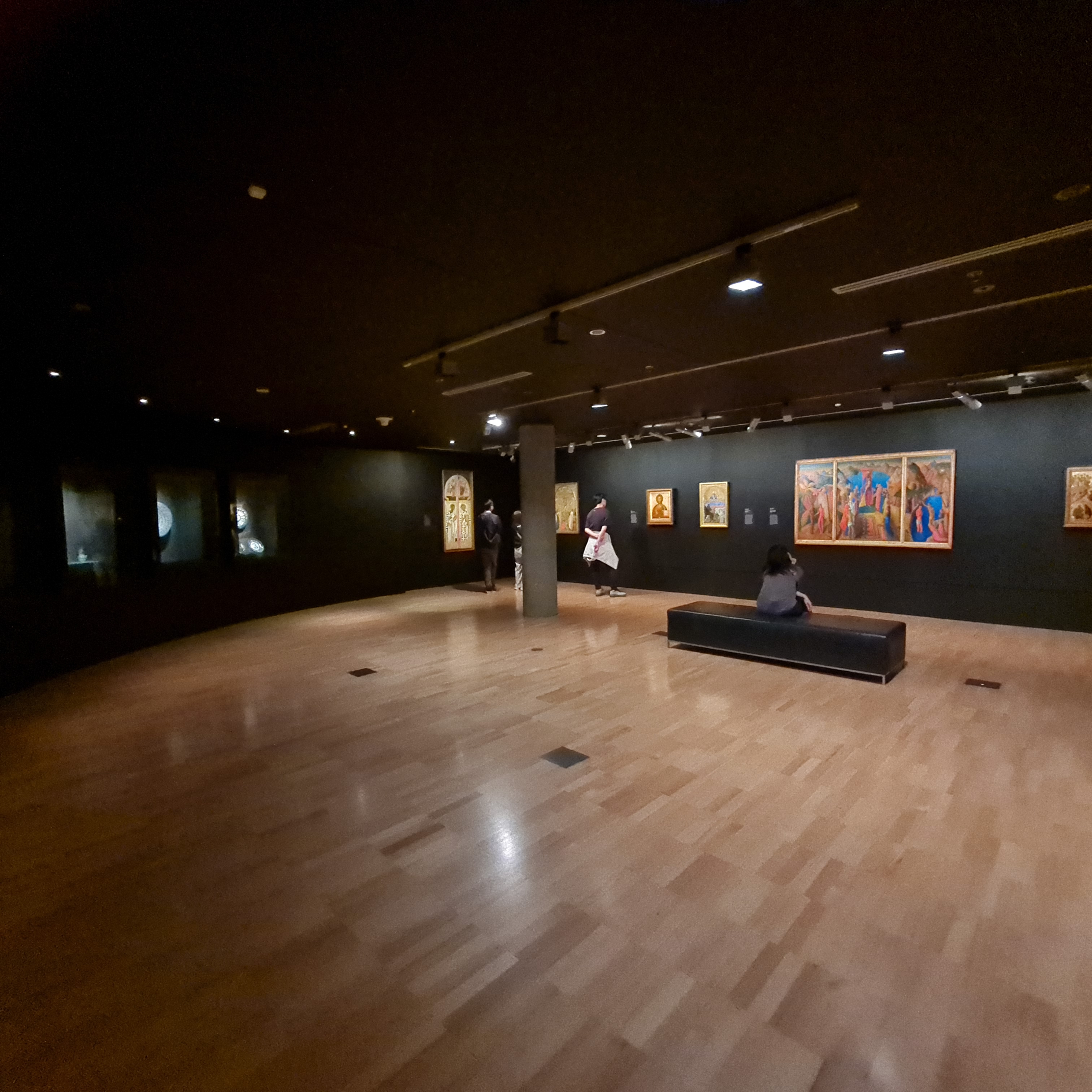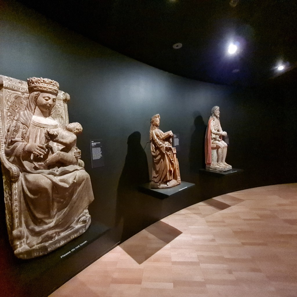 Then back onto the train and down to the Swanston Street tram for a quick trip up to the NGV International in St Kilda Rd. I wasn’t interested in the $40 Westwood/ Kawakubo exhibition (when did these exhibitions become so expensive?) and just stuck to the freebies. Somehow or other we ended up in the British and European Collection 13-16 Century, which you can see in a 3D version here if it doesn’t induce too much nausea for you. Actually you can see it online better than you can in real life because at least they turned the lights on to film it: probably because of the age of the artwork, it is very dimly lit. Their signage of the objects themselves is appalling- white print of about 12 pt font on grey behind glass. I just couldn’t read it at all. However, given that I’m not likely to visit Europe again, it was a little bit like being in a grand European cathedral close up.